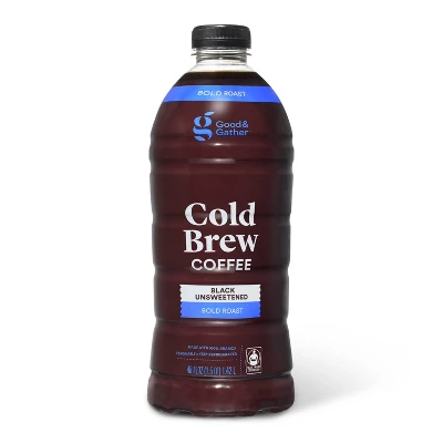 Enjoy a bold glass of coffee without the hassle of brewing with this Bold Roast Black Cold Brew Coffee from Good & Gather™. Made with 100% Arabica beans, this bold roast coffee is cold brewed for a smooth finish. Black and unsweetened, you can drink it as is or mix things up with your favorite syrups and creamers.