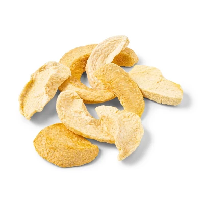 Add a touch of sweetness to your snack collection with the Good & Gather™ Freeze-Dried Peach Slices. These peach slices come in a resealable, stand-up pouch to keep them fresh between snacking, with each pouch containing four and a half servings of fruit. Each peach has also been freeze-dried to remove water while preserving flavor and nutritional value, making these real fruit slices perfect for snacking whether at home or on the go. Sprinkle a few over your morning yogurt or cereal to fuel up for the day, add them to a salad for a sweet finish, or enjoy them straight from the bag for an after-dinner treat.