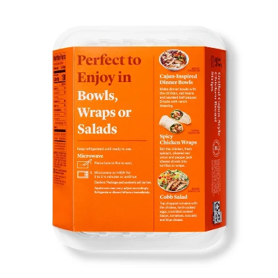 It’s easy to serve up quick and delicious options for family with these Cajun Seasoned Grilled Chicken Breast Strips from Good & Gather™. These fully cooked chicken breast strips are topped with Cajun-style seasoning and grilled over an open flame, so they come ready for you to heat, serve and use in a variety of dishes. With great-tasting flavor and a convenient size, they’re perfect for topping rice bowls and green salads or for wrapping up in a tortilla with your favorite veggies and dressing.