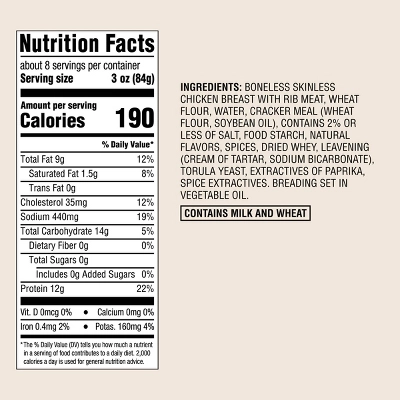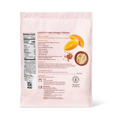 For busy weeknights, casual weekend gatherings or when you’re craving your favorite protein and want a quick fix, this Popcorn Chicken from Good & Gather™ is a must-have staple to have on hand in your freezer. The bag contains fully cooked white meat chicken in bite-sized pieces that are crispy and crunchy when cooked — all you have to do is simply heat them in the oven for a quick and tasty treat the whole family is sure to love. Plus, these perfectly sized finger food snacks are made with chicken that’s raised with no antibiotics ever, no added hormones and no steroids* for great flavor you can enjoy serving to family and guests alike.