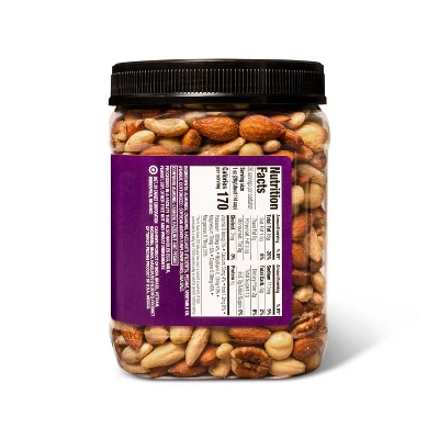 These Sea Salt Roasted Mixed Nuts from Good & Gather™ are great for entertaining, afternoon snacking, baking and more, making for a versatile pantry staple you won’t want to go without. In a large container that’s perfect for stashing in your desk at work, keeping on the kitchen counter or sharing with friends, this mix has something for everyone. Almonds, cashews, hazelnuts and pecans all feature, and each is roasted just right to bring out their individual natural flavors for a craveable and satisfying snack. Mix a handful into your morning oats for a crunchy start to your day, or go the indulgent route with melted caramel and chocolate to create nut clusters everyone will want the recipe for.