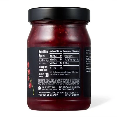Delight your taste buds with the decadent yet not too sweet flavor of this Organic Signature Red Fruit Blend Fruit Spread from Good & Gather™. Made with a blend of raspberries, strawberries, cherries and red currants, this spread has no artificial flavors, synthetic colors or high fructose corn syrup and is organic and non-GMO. Great on toast, it also makes an unbeatable PB&J sandwich when paired with your favorite peanut butter.