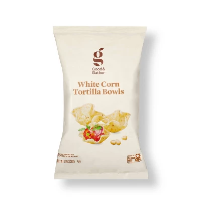 Stock up for game day or taco night with these White Corn Tortilla Cups from Good & Gather™. Made from white corn in a classic bowl shape, they’re perfect for serving with salsa, guacamole, queso and other dips. Also great for taco salads and nachos, the 10-ounce bag gives you plenty to share with the whole family.